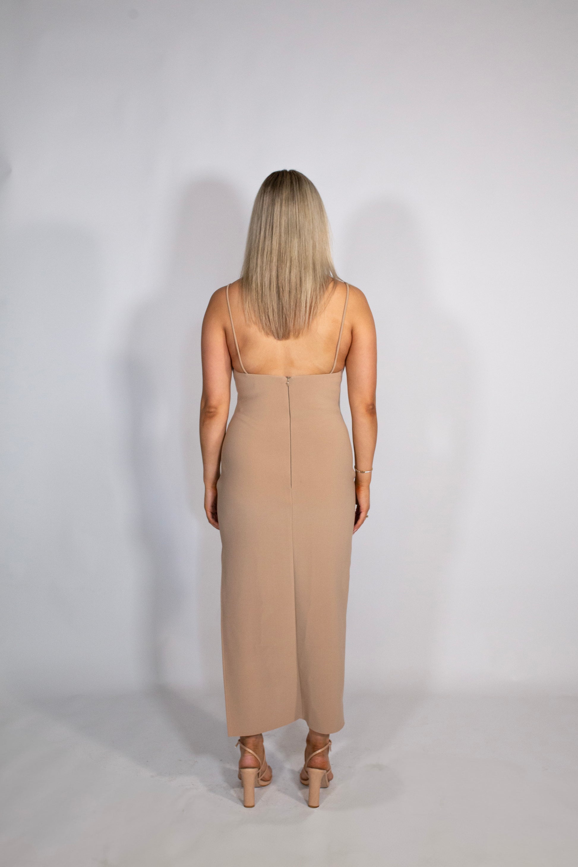 The Ivy Bonded Crepe Midi Dress is the perfect blend of classic elegance and contemporary style. Designed to flatter and sculpt, this midi-length dress features a chic cut-out and a cinched waist for a refined, statement look. Ideal for formal events and special occasions, pair it with minimal accessories and sleek heels for effortless sophistication.